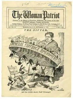 The Woman Patriot Corporation (WPC) was an American Progressive Era organization formed by women who had been previously active in the National Association Opposed to Women's Suffrage. The group identified as anti-communist, anti-pacifist, and anti-feminist.[1] The WPC was formed in response to the then-recent enfranchisement of women via the Nineteenth Amendment on August 26, 1920.