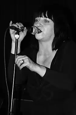 Viv Albertine (born 1954, in Sydney, Australia) is a guitarist and singer for the British punk band the Slits. Albertine was part of the inner circle of the punk bands the Clash and the Sex Pistols, and joined the Slits in 1977. She has also played with the post-punk band Flying Lizards, the dubstep-influenced New Age Steppers and the punk band the Flowers of Romance.[72]
