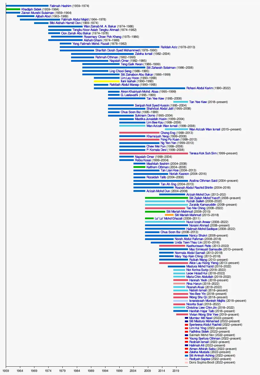 Women have had the right to both vote and sit in parliament since 1959 and all states and territories have been represented by a woman in the Dewan Rakyat.[2][3][4]