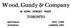 Wood, Gundy & Company was established in Toronto, Ontario, in 1905 by George Herbert Wood and James Henry Gundy. The firm first specialized in the distribution and underwriting of government and municipal bonds. In 1919, the firm opened an office in New York City.[1] Founded as a partnership, the firm incorporated in 1925.
