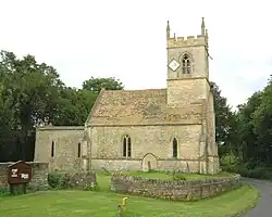 Woodeaton has had a parish church since the early or middle part of the 11th century,[11] when a Saxon timber one was built.[12] This was destroyed by fire by about 1080 at the latest.[12] The present Church of England parish church of the Holy Rood originates from an early Norman stone church that was built between 1070 and 1120 to replace the destroyed Saxon one.[13] It was a small building, dominated by a western tower.[13] The original Norman layout is not entirely certain: there may have been a small nave east of the tower and an even smaller chancel beyond that, or the tower may have been a "tower-nave" with only a chancel to the east of it.[14] In about 1180–1220 a late Norman south aisle and possible south chapel were added and in about 1200–50 the chancel was extended.[15] An Early English Gothic doorway in the south wall of the chancel is of a style that suggests a date of 1200–30.[16]