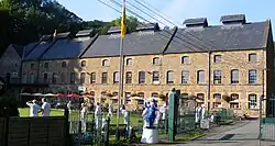The current paper mill building, whose water wheel is powered by a small canal from the river, dates from around 1860 and is a Grade II listed building.[73] The commercial production of handmade paper ceased in February 2008 after owner Gerry Cottle concluded there was no longer a market for the product, and therefore sold most of the historic machinery. Visitors to the site are still able to watch a short video of the paper being made from cotton. Other attractions include the dinosaur valley, a small museum about the cave and cave diving, a theatre with circus shows, a house of mirrors and penny arcades.