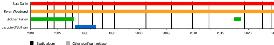 - Siobhan Fahey (1980–1988, 1998, 2002, 2017–2018)