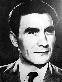 People loyal to the CPY were next appointed as leaders of the RC with Lazar Koliševski as a secretary.[70] He was sent in September in Skopje. The new leadership began formation of partisan detachments. Armed insurgents from the Prilep Partisan Detachment "Goce Delčev" attacked Axis occupied zones in the city of Prilep, notably a Bulgarian police station, on 11 October 1941.[70] This date is considered to be the beginning of the Macedonian Uprising, which began at the latest compared to the other Yugoslav republics, where it began in July.[71] Tne next day in the Kumanovo region, the Karadak and Kozjak partisan detachments were formed, they soon engaged in fighting with the Bulgarian police with most of the members ending up killed and arrested, after which they ceased to exist. The Prilep detachment was active until December 1941, when it split in three groups – the first in Skopje, the second in Tikves, and the third in Bitola. However, in November the new leader of the RC – Koliševski was arrested and sentenced to death by a Bulgarian military court. He wrote two appeals for clemency to Bulgarian Tsar and to Defense Minister. There he regrets the accomplishment, insisting on his Bulgarian origin. As result his death sentence was commuted to life imprisonment, and Koliševski was sent to a prison in Pleven, Bulgaria.[72][73][74]