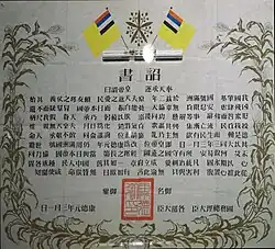 Empress Dowager Longyu endorsed the "Imperial Edict of the Abdication of the Qing Emperor" on 12 February 1912, under a deal brokered by Yuan, now Prime Minister, with the imperial court in Beijing and the Republicans in southern China.[28] Puyi recalled in his autobiography the meeting between Longyu and Yuan: