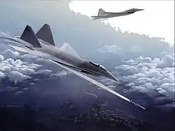 American reconnaissance satellites first spotted the advanced Soviet Su-27 and MiG-29 fighter prototypes between 1977 and 1979, which caused concern in the US. Both Soviet models were expected to reduce the combat and maneuverability advantages of contemporary US fighter aircraft, including the newly introduced F-15 Eagle and F-16 Fighting Falcon.[1] US tactical airpower was further threatened by new Soviet systems such as the A-50 airborne warning and control system (AWACS) revealed in 1978 and more advanced surface-to-air missile systems.[2] In 1981, the USAF began developing requirements and discussing with the aerospace industry on concepts for an Advanced Tactical Fighter (ATF) with both air-to-air and air-to-ground missions in consideration. The ATF was to take advantage of emerging technologies, including composite materials, lightweight alloys, advanced flight-control systems, more powerful engines, and stealth technology.[3]