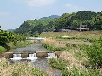 Since 1704, the river was reconfigured, originally its flow was north from the Ishikawa River confluence point, where it joined the Shirinashi River and Kizu River.[1]