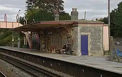 The eastbound platform buildings were refurbished in 2005 to guard against rising damp.[38] A year later, in 2006, replica Great Western Railway benches were provided by the National Trust.[37] Hanging baskets were brought to the station in 2011 as a joint effort between the Severnside Community Rail Partnership, Cleve Nurseries and the station's garden group.[39]