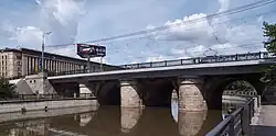 Within the city of Moscow the Yauza is spanned by 21 road bridges, five railroad bridges, one dedicated tram bridge, two Moscow Metro bridges, numerous pedestrian bridges and the historical Rostokino Aqueduct. Spring floods due to low clearance under old bridges were common, with four in the 1950s alone (1951, 1952, 1955 and 1957); they were practically eliminated when these bridges were rebuilt to modern standards.[18] The most recent flash flood on the Yauza occurred August 14, 2003, following a record-setting rainfall.[19] The Yauza and its valleys are not particularly prone to the landslides and erosion common in the western and southern districts of Moscow. There were two minor landslides on the Yauza in 2008, compared with 40 on the Chertanovka River and 33 on the Gorodnya River.[20]