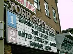 York Square Cinema (1970-2005) is a former art house cinema located in Downtown New Haven, Connecticut, USA. The York Square was built in 1970. It housed three separate movie theaters in a renovation that connected several old buildings. The York Square Cinemas was a business partnership between Leonard Sampson and Robert Spodick. The York Square was managed by Spodick sons Peter and Michael. The York Square held art exhibits and Film Festivals. They served RC Cola, Raisinettes, and popcorn. They would play classical music in the lobby. The York Square offered free Willoughby's Coffee for all patrons. There was free parking ticket validation stamps for movie patrons parked in the lot in the center of Broadway. The only live remaining owner, Robert Spodick, decided to close the doors of the York Square in July 2005 after several unsuccessful lawsuits with the large distribution chains.
