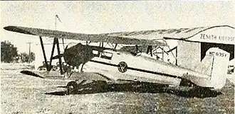 The Zenith Z-6 is a single engine biplane U.S. airliner built in the late 1920s. Its cabin, in the fuselage immediately behind its radial engine, holds five or six passengers depending on engine power. It is flown from an open cockpit further aft. Nine were completed and one has been restored to flight.
