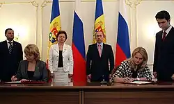 Zinaida Greceanîi[a] (Romanian: [ziˈnaida greˈceanîi]; born 7 February 1956[1]) is a Moldovan politician. She was the President of the Moldovan Parliament between 8 June 2019 to 26 July 2021. Greceanîi was previously also the Prime Minister of Moldova from 31 March 2008[1][2] to 14 September 2009. She led the Party of Socialists of the Republic of Moldova (PSRM) from 2016 to 2020 and was previously a member of the Party of Communists of the Republic of Moldova (PCRM).[3] She was Moldova's first female Prime Minister[2] and was the second female Communist head of government in Europe, preceded only by Premier Milka Planinc of former Yugoslavia.[4] She has been referred to by her colleagues in PSRM as the "Moldovan Margaret Thatcher".[5]