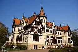In the village of Štípa, there is Lešná Castle. It was built in the Neogothic, Neorenaissance and Neobaroque styles in 1887–1893. It is one of the youngest aristocratic residences in Moravia.[24] The castle was built for the Seilern-Aspang family on the site of an older castle from the 18th century. Today the castle is open to the public and there are collections of unique and historically valuable objects.[25] The castle is located inside the Zlín-Lešná Zoo complex. It is the second most-visited zoo in the country, and as of 2022, it was overall the third most visited tourist destination in the country.[26]