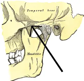 Articulation of the mandible. Lateral aspect (Zygomatic process visible at center) | |